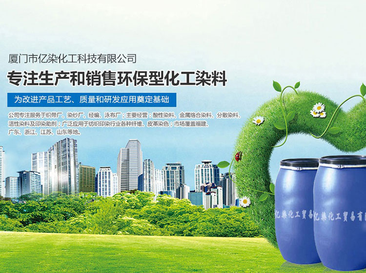 廈門市億染化工科技有限公司是一家集研發(fā)、生產(chǎn)、銷售一體的綜合型企業(yè)。公司主要經(jīng)營:酸性染料、金屬絡合染料、高牢度分散染料及印染助劑。公司信守“以誠信贏合作、以質(zhì)量贏市場、以創(chuàng)新贏發(fā)展、以服務贏生存”的企業(yè)精神服務于廣大客戶,多年以來建立了良好的市場口碑,市場遍布福建、廣東、浙江、江蘇、山東及東南亞國家,與多家知名企業(yè)建立了長期合作伙伴關(guān)系!